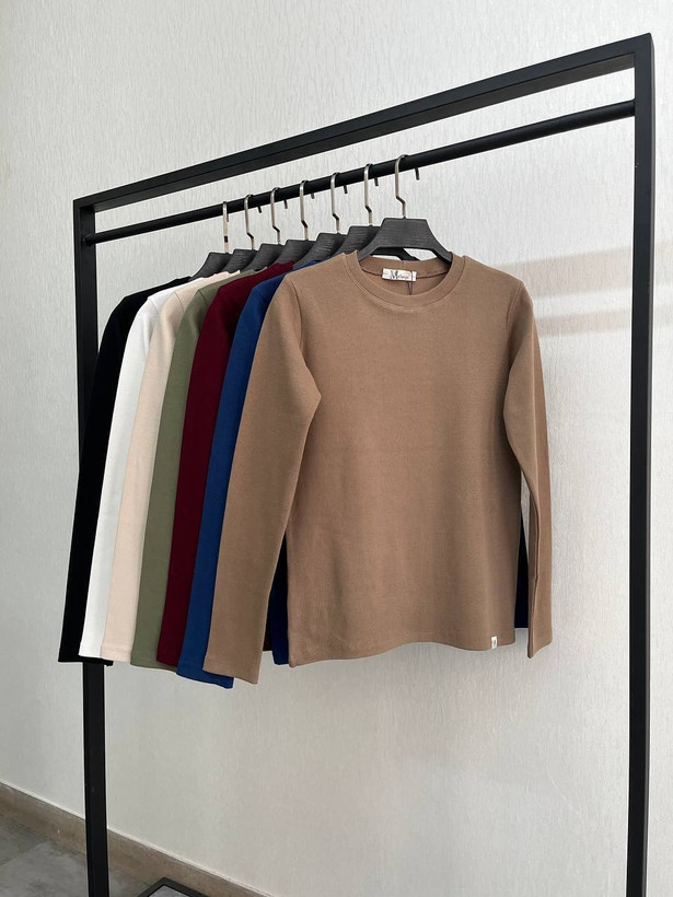 بلوز گرد استین دار جنس کشبافت سوپر فری سایز ۳۶ تا ۴۴