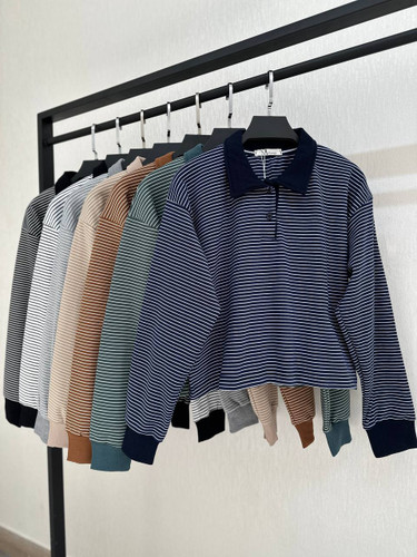 بلوز کراپ یقه خشتی راه راه